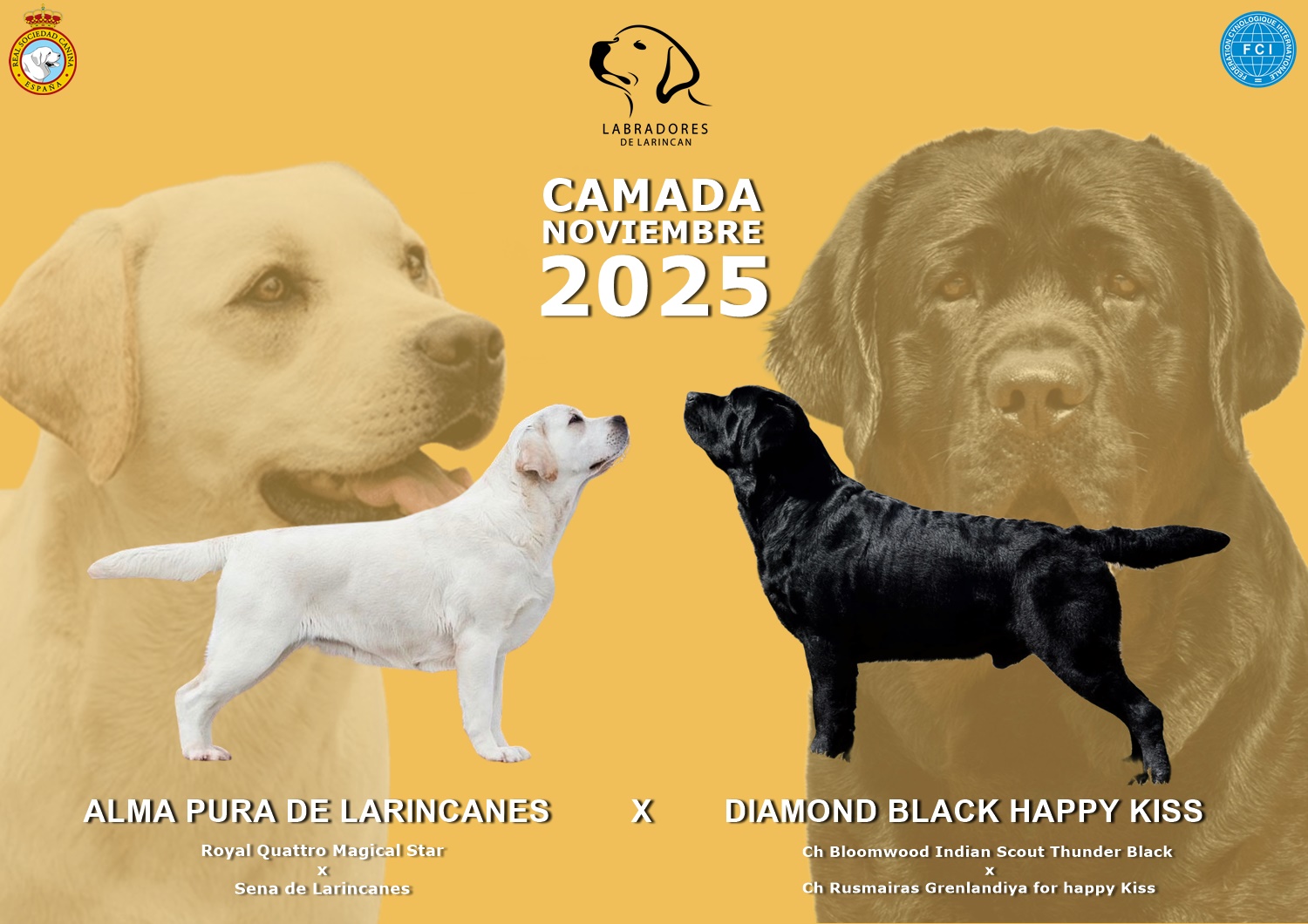 Apostamos por la cría controlada teniendo un promedio de dos camadas anuales, realizando una selección y siguiendo las mejores líneas de sangre para mejorar esta raza y poder disfrutar de ejemplares sanos, bonitos y con el auténtico carácter del Labrador Retriever.
